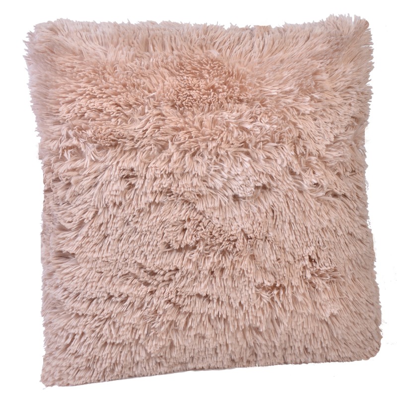 Квадратна декоративна възглавница, изработена от полиестер в бежов цвят.