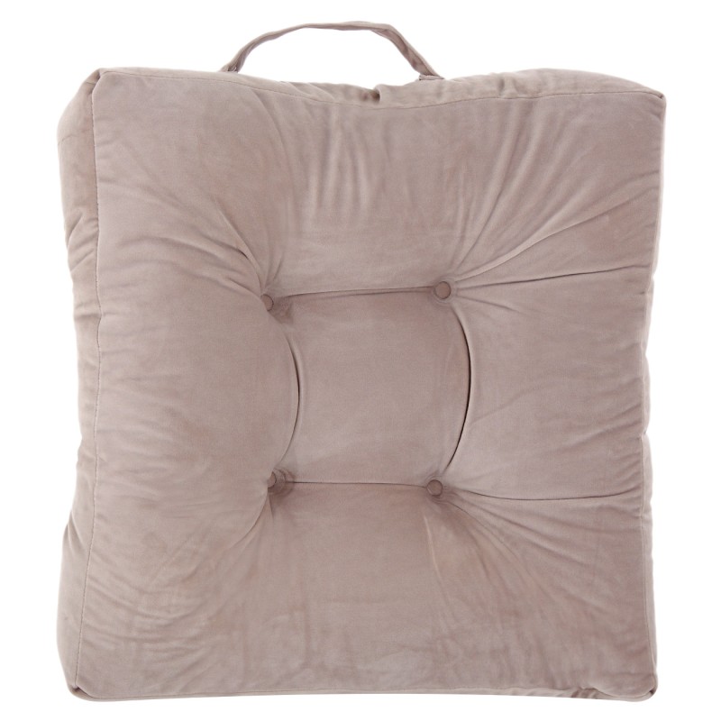 Квадратна декоративна възглавница за стол, изработена от полиестер в цвят капучино с практична дръжка за лесно носене.