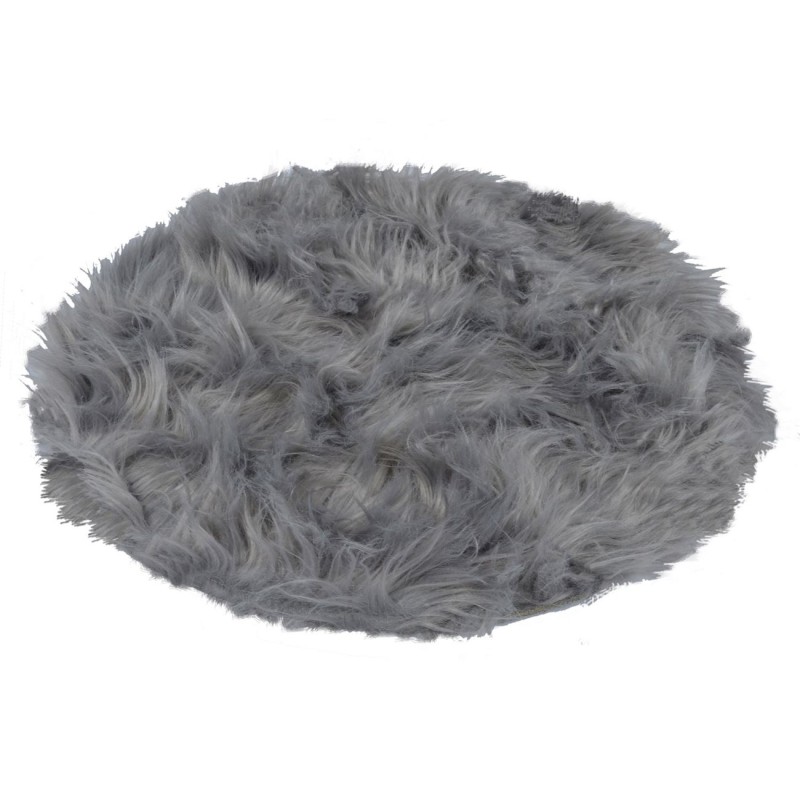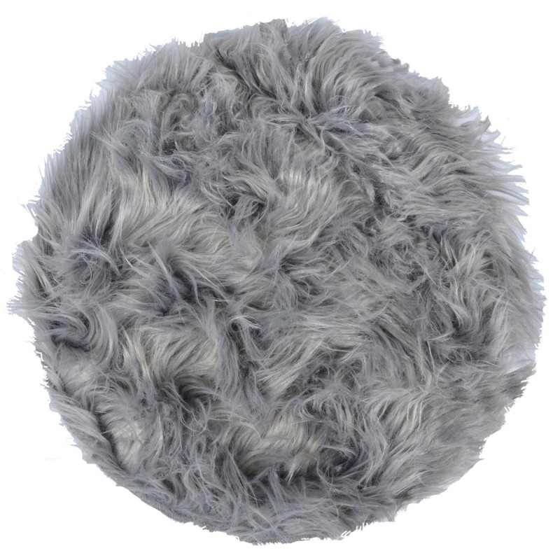 Кръгла декоративна възглавница за стол, изработена от изкуствена вълна в сив цвят.