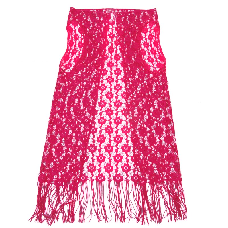 Детски кафтан без ръкави в червен цвят с красива дантела и ресни.