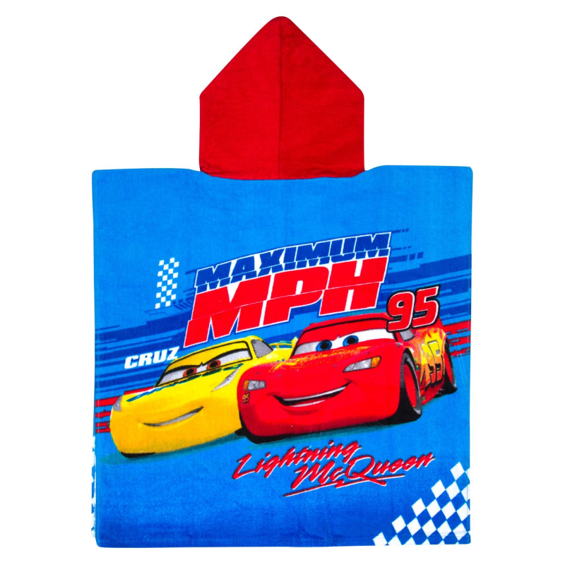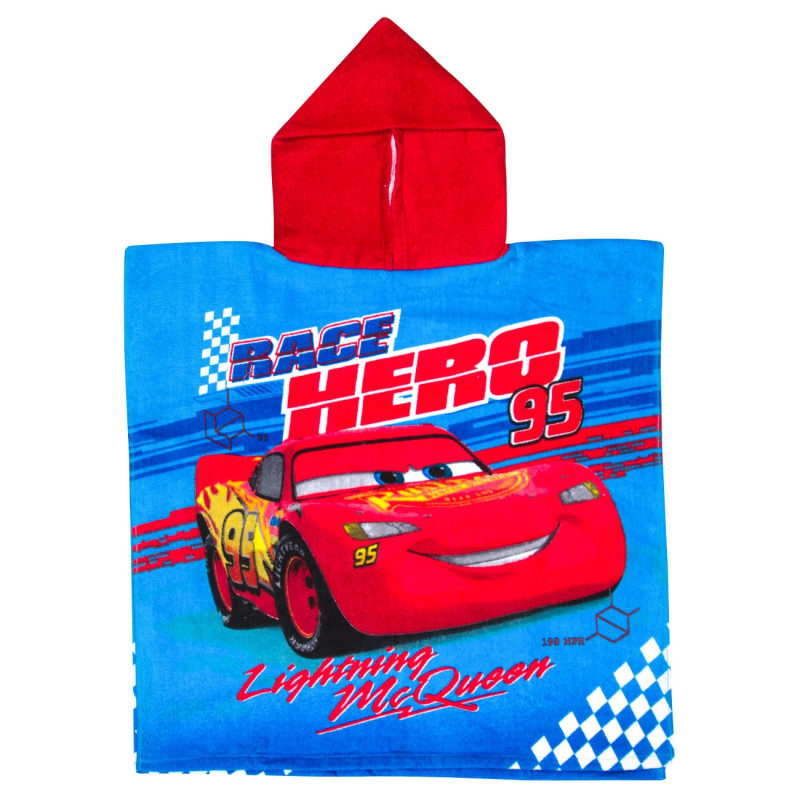 Детско хавлиено пончо за плаж в син цвят с червена качулка и щампа на Колите.