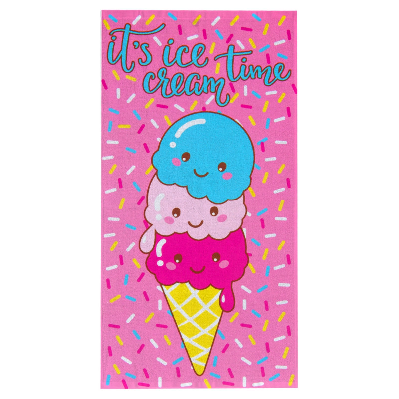 Детска хавлиена кърпа за плаж с щампа на сладолед, която зарадва всяко дете.