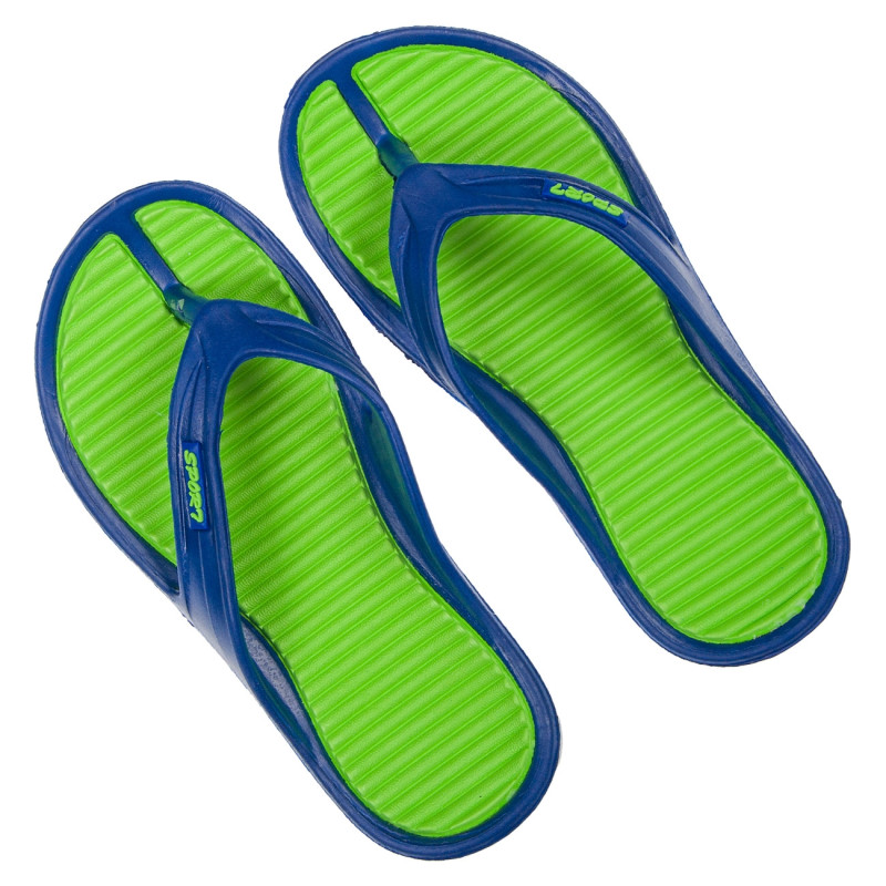 Детски джапанки за момче в зелен цвят със сини каишки с надпис SPORT.