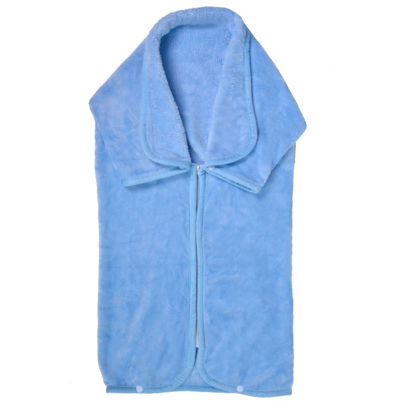2 в 1 - шалте за бебешко легло, изработено от тъпъл и мек полиестер в светло син цвят с копчета и цип, благодарение на които се превръща в удобен халат за вашето бебе.