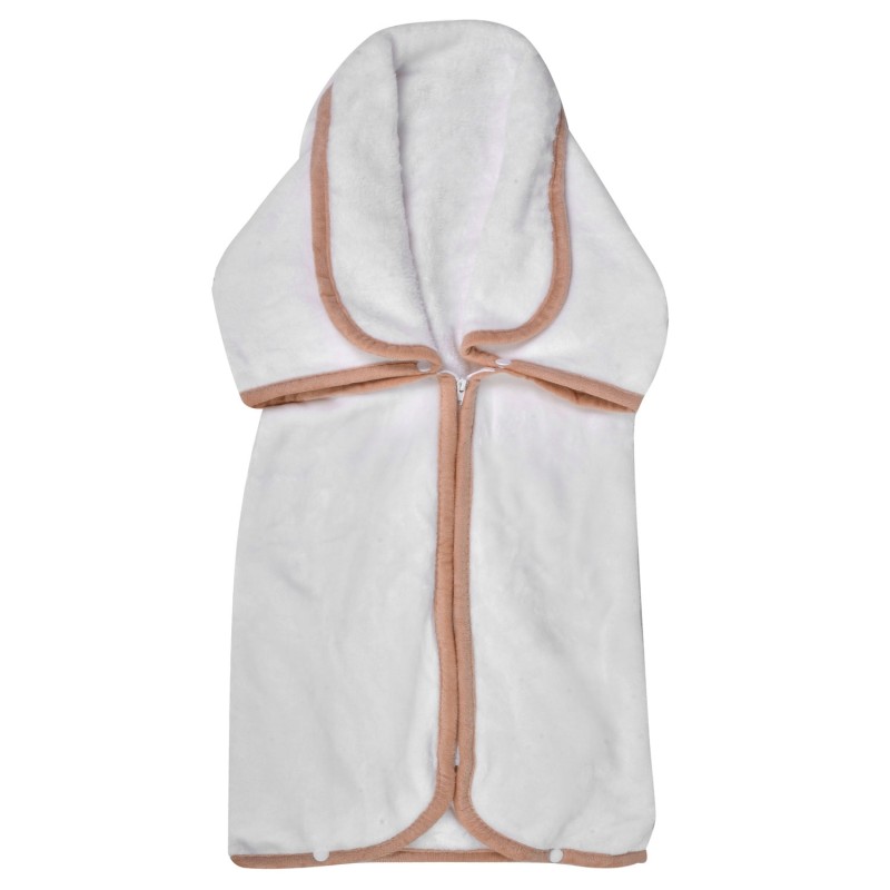 2 в 1 - шалте за бебешко легло, изработено от качествен и мек полиестер в бял цвят с копчета и цип, благодарение на които се превръща в удобен халат за вашето бебе.