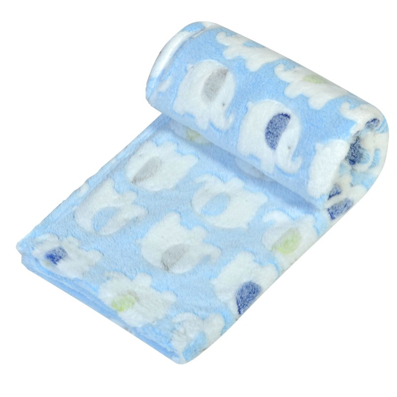 Покривка за бебешко легло, изработена от висококачествен и мек полиестер в светло син цвят с принт на слончета.
