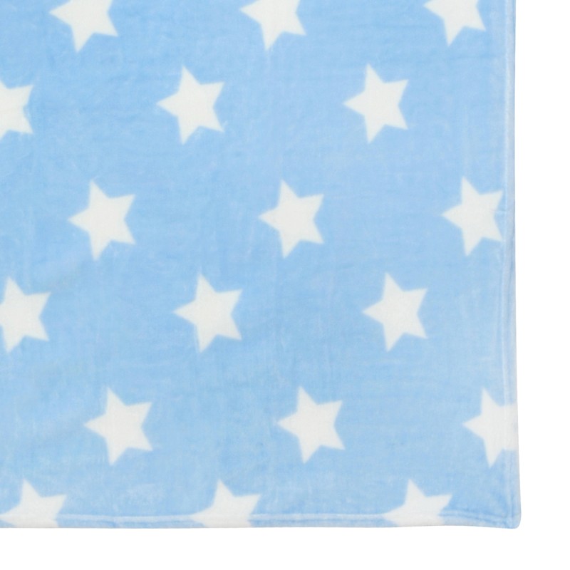 Покривка за бебешко легло, изработена от висококачествен и мек полиестер в светло син цвят с принт на звезди.