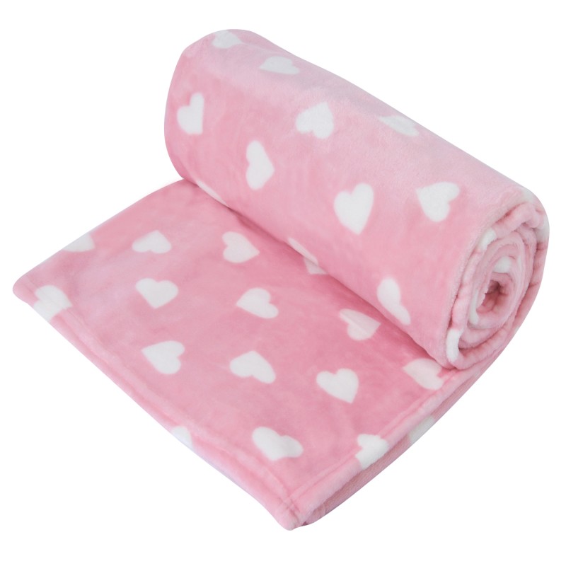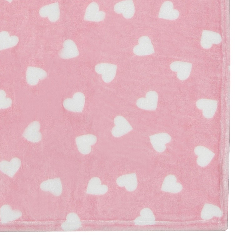 Покривка за бебешко легло, изработена от висококачествен и мек полиестер в розов цвят с принт на сърца.