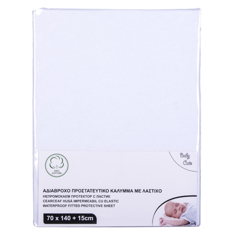 Непромокаем протектор с ластик за бебешко легло, изработен от полиестер и памук с непромокаемо покритие.
