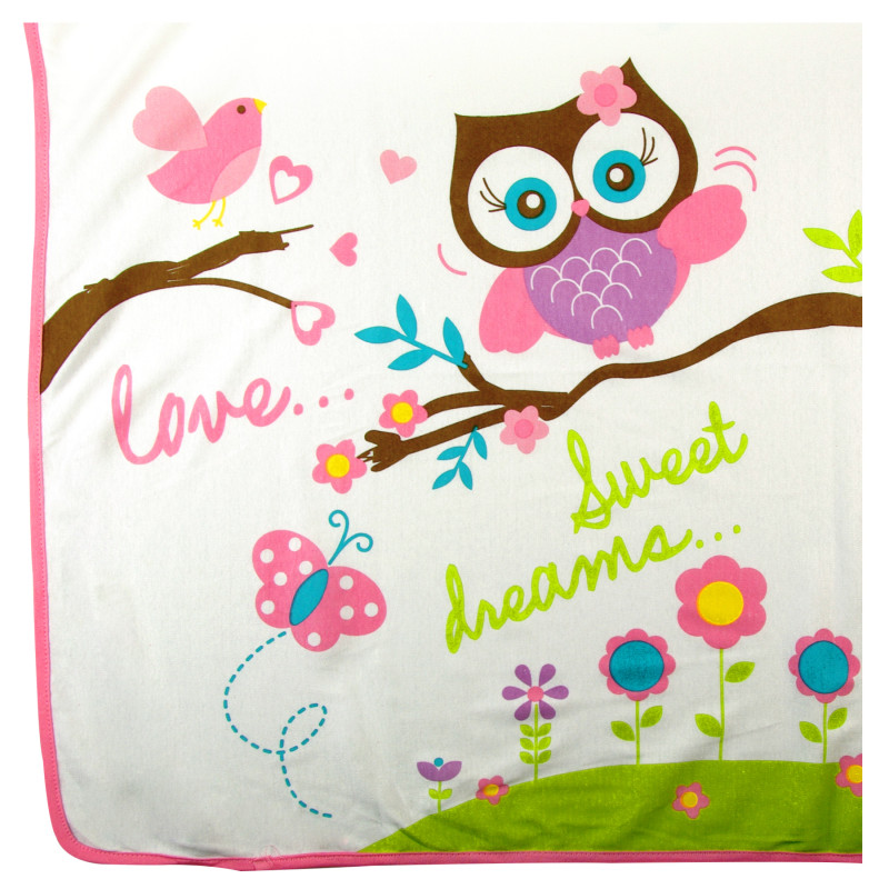 Покривка за бебешко легло, изработена от висококачествен памук с щампа на симпатична сова.