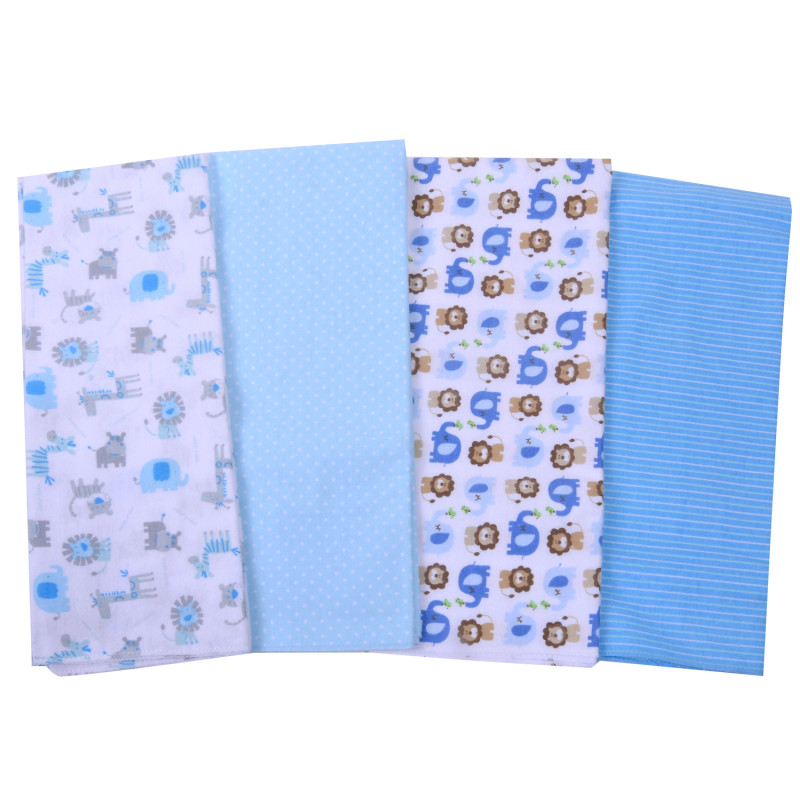 Комплект от 4 броя бебешка фланелена пелена с различни десени в светло сини нюанси - райе, звезди, точки и животни.