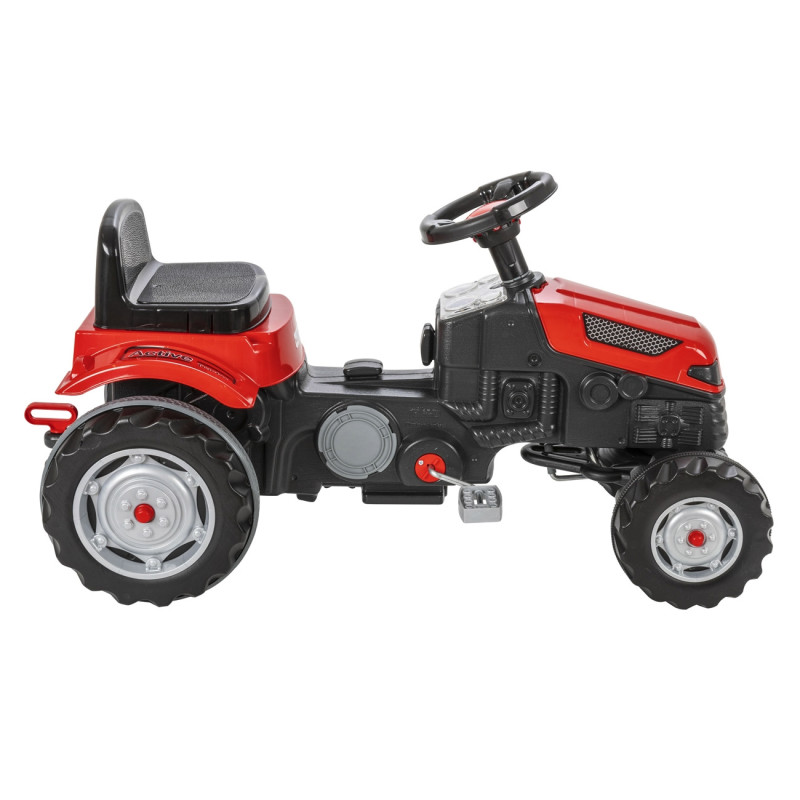 Детски велосипеден трактор с педали и свирка в червен цвят.