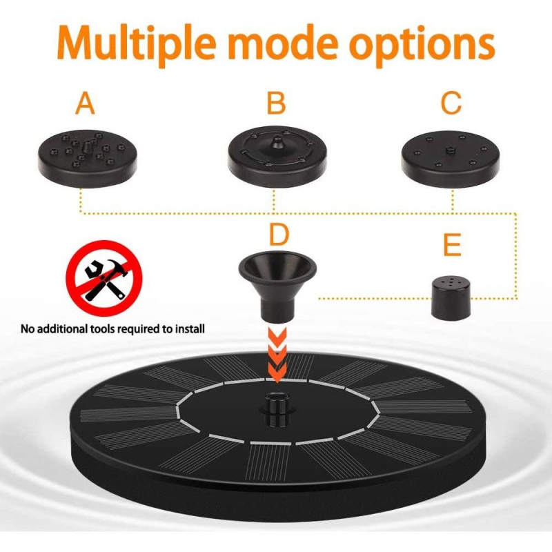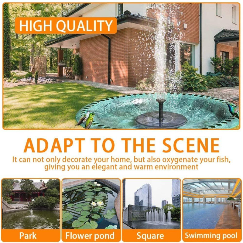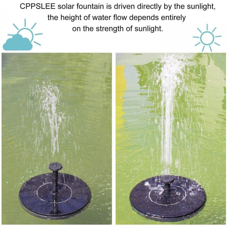 Соларен фонтан напълно захранван от слънчева енергия, без електрически контакти и излишно окабеляване. Диаметъра на фонтана е 16см. Колкото повече слънчева светлина, толкова по-добър ефект. След като слънчевият панел придобие слънчева светлина, той ще стартира автоматично. Подходящ за басейн с птици, резервоар за риба, малко езерце, градина, циркулация на водата за кислород.
