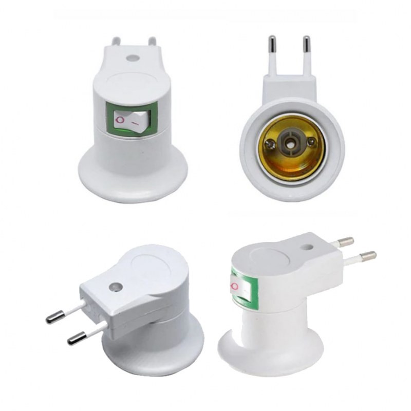Фасунга с щепсел за включване в контакт. Подходяща за крушка с цокъл E27. Накрайникът разполага с превключвател за включване и изключване.