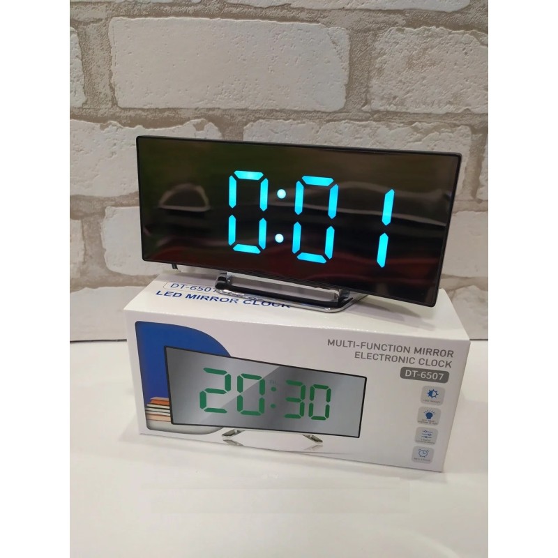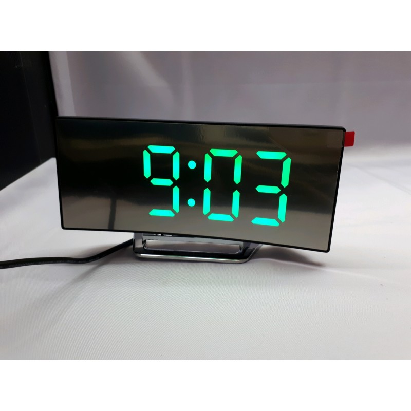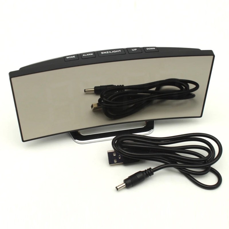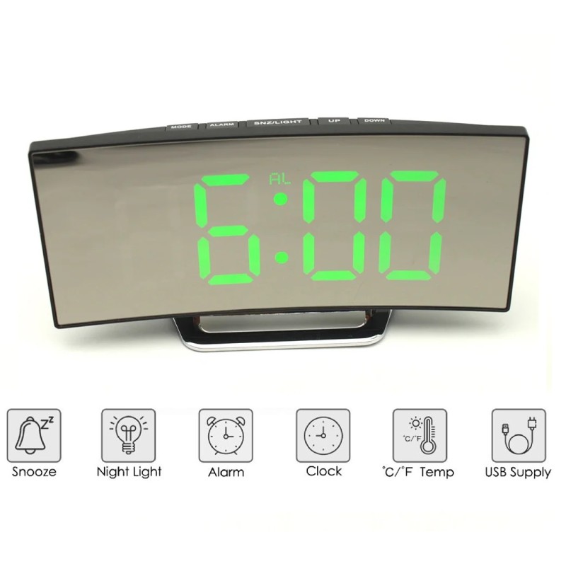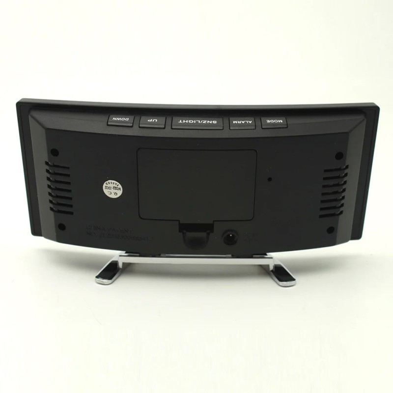 Настолен елетронен часовник с големи светещи цифри. Изключително силен дизайн с леко извита форма, удобна регулируема поставка и голям огледален дисплей 7.8 инча.