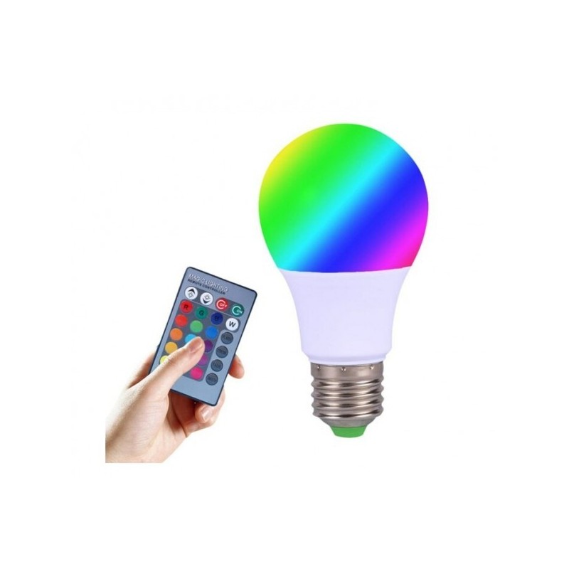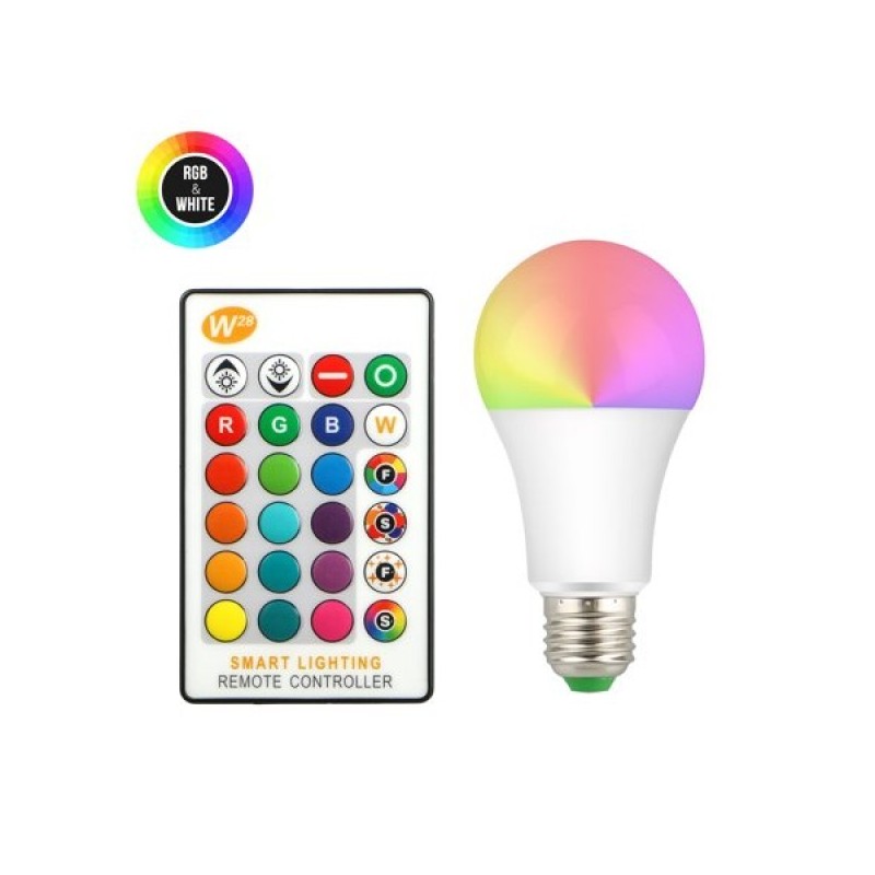Просто я постявяте във фасунга E27 (стандартен цокъл) и използвайте дистанционното за да избирете между 16 цвята или 4 различни режима: