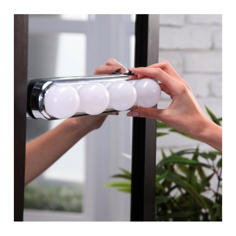 Осветителното тяло представлява основен бар с 4 LED крушки. Захваща се лесно за огледалото с помощта на вакумни държачи.