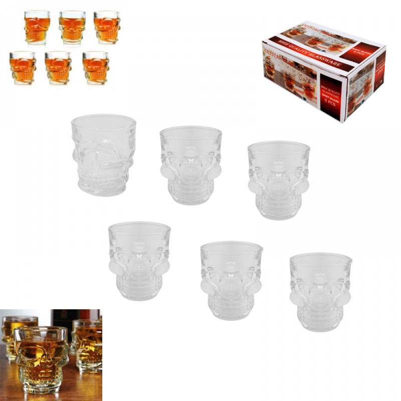Стъклени чаши за шотове с форма на череп. Идеални за зловещи купони, Тики празненства и празненства за Хелоуин.