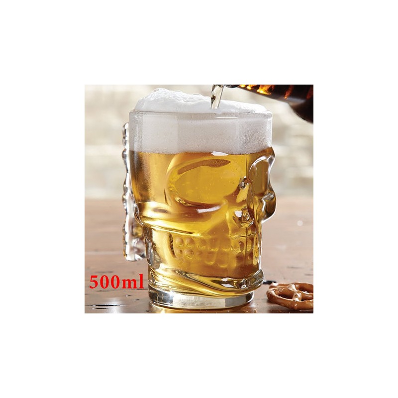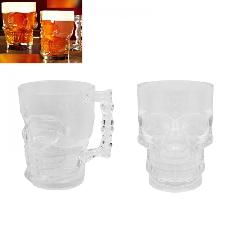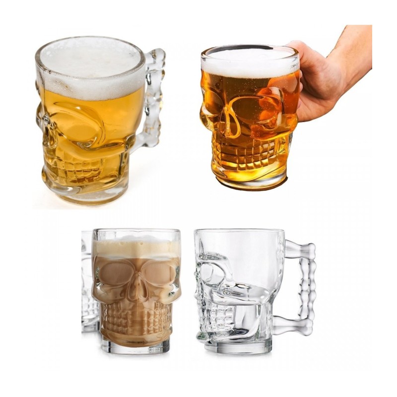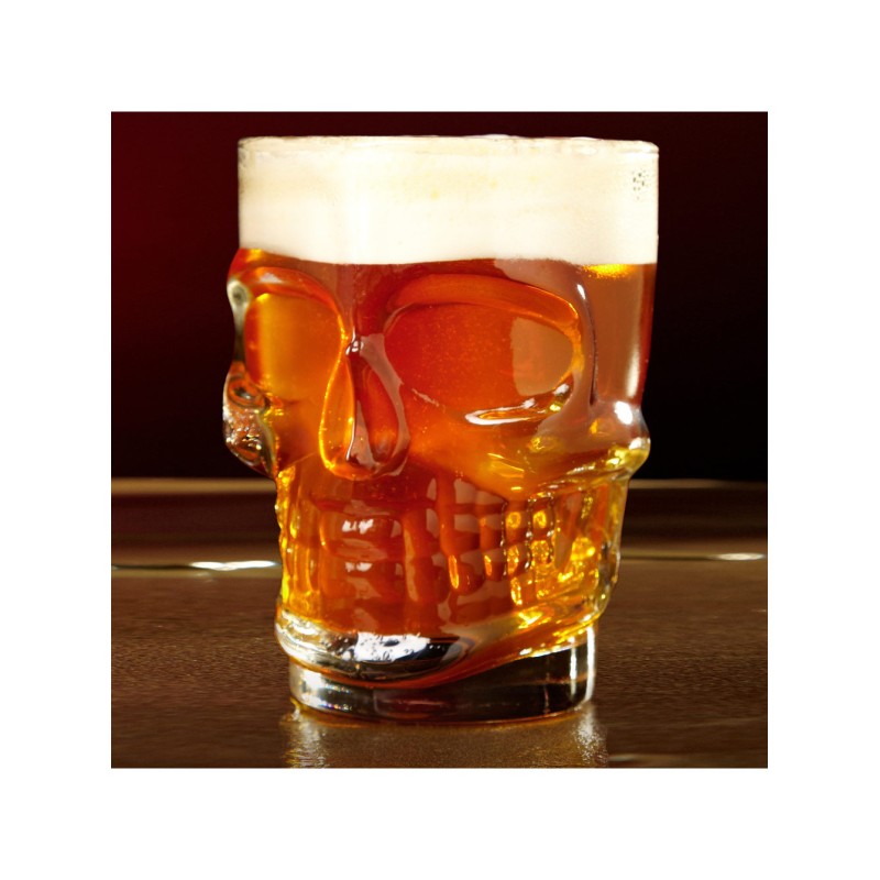 Масивна стъклена чаша за бира във формата на череп. Ефектен начин да поднесете бира на компанията.