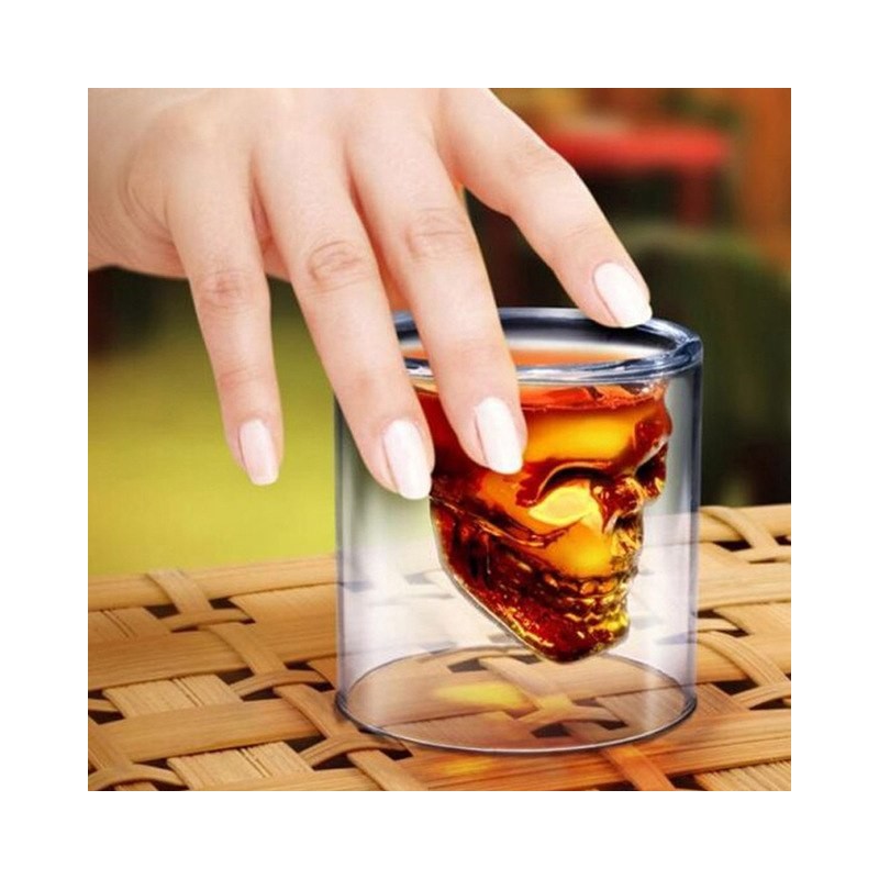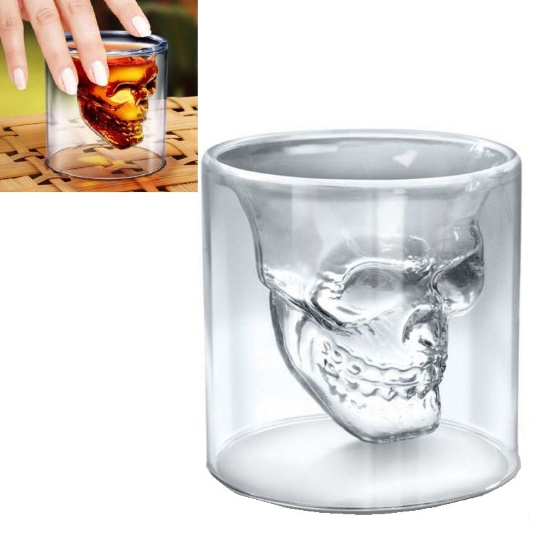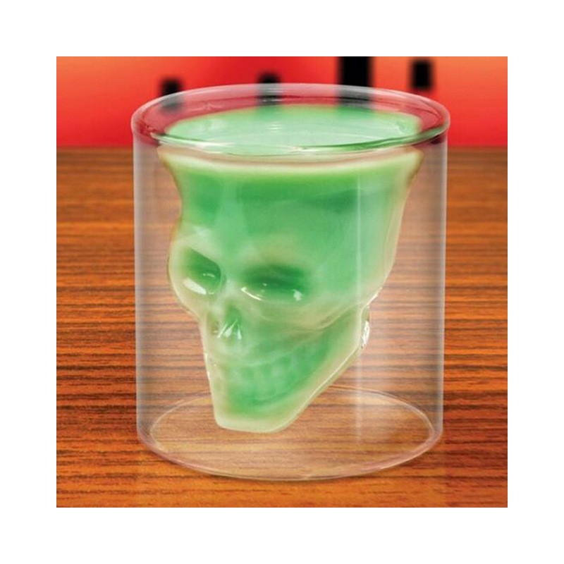 Стъклена чаша с триизмерен дизайн във формата на череп. С нея ще впечатлите всеки, на който давате наздравица. Щом я напълните с течност, черепът ефектно ще се оцвети. Може да използвате чашата за шотове с алкохол или да я напълните с восък - за свещ.