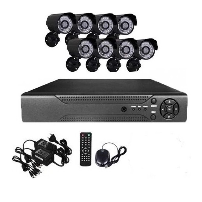 В комплекта са включени осем (8) камери с всички аксесоари за правилен монтаж на стена или таван. Камерите разполагат с инфрачервени диоди за отличен запис дори на тъмно. С 30 градуса на зрителното поле и остротата те са в състояние да ви покажат всичко във всеки ъгъл на помещението, ден или нощ. Камерите ви информират напълно какво се случва във вашия дом, офис или магазин!