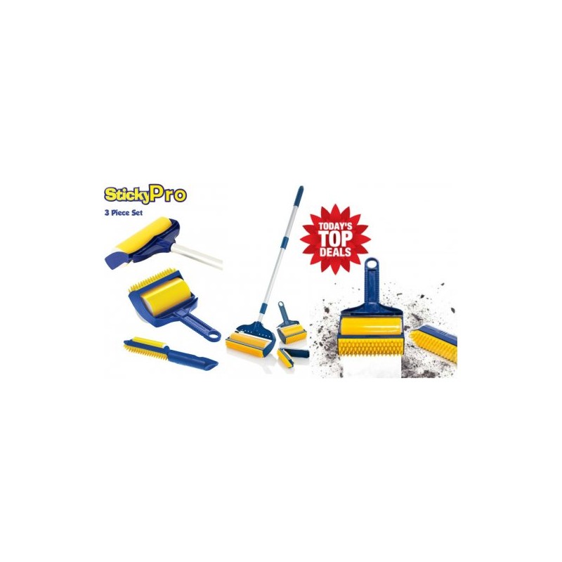 Почистете дома си бързо с StickPro - голям комплект от 3 части -малка, средна и голяма и представлява ролка от силиконова лепкава повърхност за многократна употреба, с която лесно можете да почистите косми от домашни любимци, мъх, паяжини, пърхут от дрехите, дори разпиляната зърнена закуска по земята.