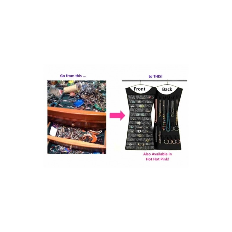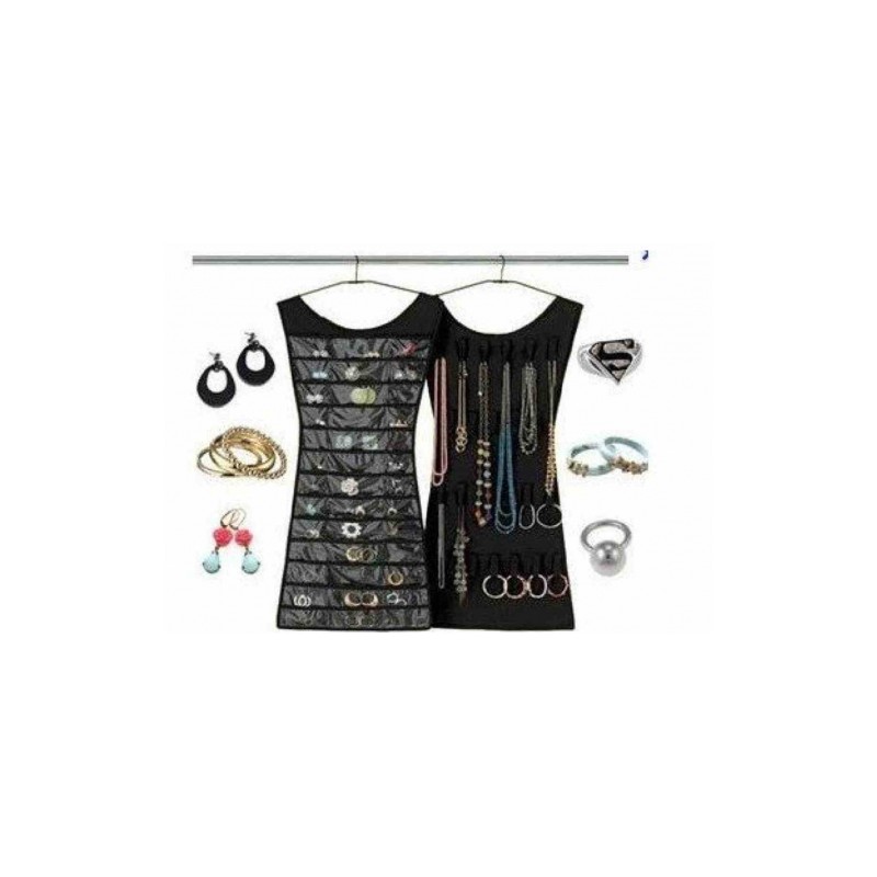 Облекчете - и подредете - живота си! Подарете си органайзера за бижута “The Little Black Dress”. Той е красиво пано във формата на малка черна рокля. Направен е от устойчив полистер и е двустранен. В 39-те прозрачни джобчета бижутата ви ще бъдат леснодостъпни и добре съхранени. На разположение са и 24 закопчалки за гердани, гривни и обеци.