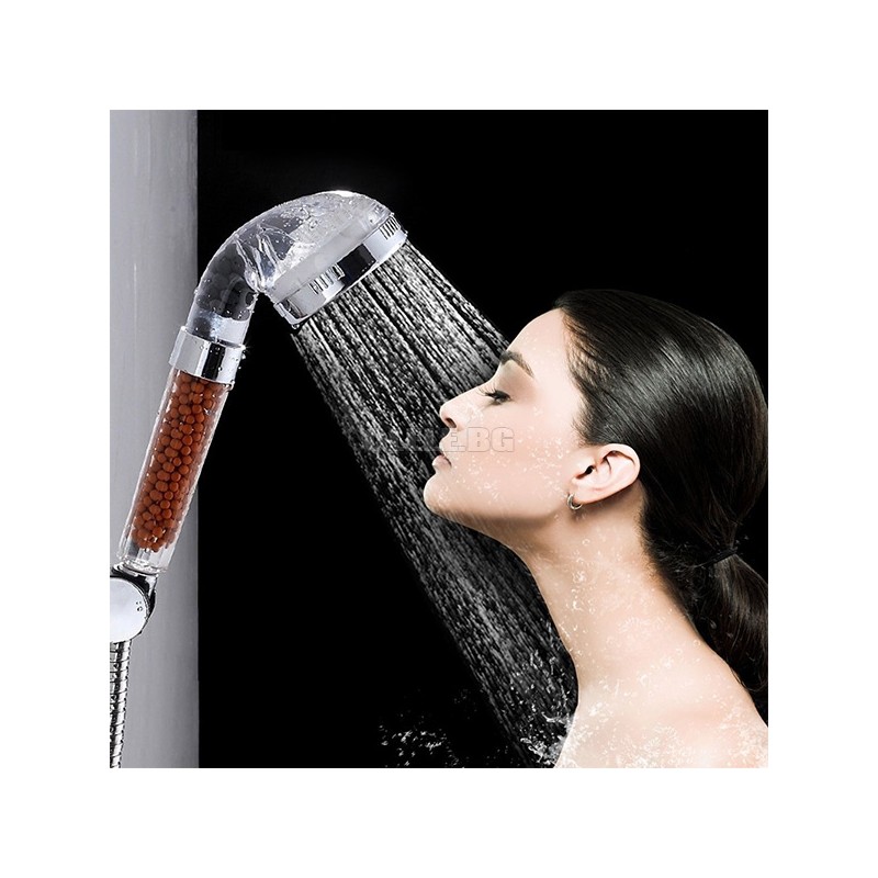 В дръжката на душ слушалката са разположени кристали турмалин и