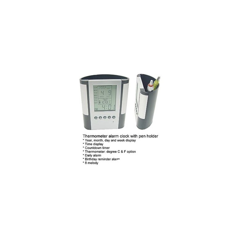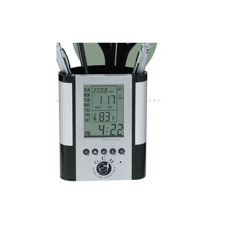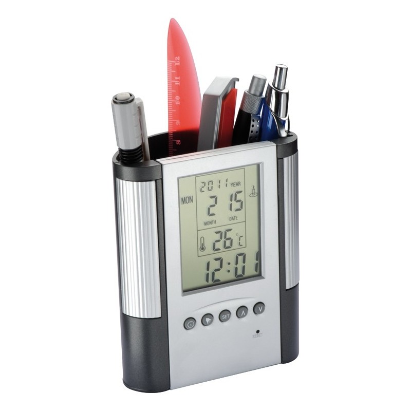 Удобен Органайзер-моливник, часовник, календар и термометър за бюрото ти