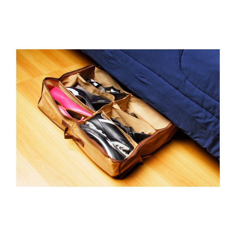 Обичаш да си купуваш обувки и ги съхраняваш в кутии и шкафове... но как да намериш любимия чифт? Как да внесеш ред в любимите си вещи? Сега всяко свободно пространство може да бъде превърнато в удобно място за складиране с помощта на SHOE UNDER - практичен органайзер за обувки. Събира се в дрешника, под леглото, над гардероба! Обувките ти ще бъдат винаги „под ръка” - подредени и предпазени от прах и домашни любимци. В разделите лесно може да наредиш и допълнителни аксесоари като колани, например. Ако използваш SHOE UNDER за децата, възползвай се да комбинираш с обувките и подходящи чорапки в съседно отделение на органайзера! SHOE UNDER e направен от устойчив перящ се полиестер, с прозрачен PVC капак, който улеснява намирането на желания чифт с един поглед! С практична дръжка за пренасяне, този продукт ще позволи да въведете ред в домашното пространство и да съхранявате до 12 чифта обувки на удобно място!