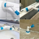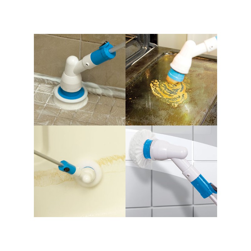 Уредът се захранва с акумулаторна батерия, което решава проблема с кабелите и оплитането. Разполага с дълга дръжка и три накрайника, благодарение на които можете да почиствате големи площи, ъгли и трудни за достигане места. Петната от сапун, изсъхнали капки вода, варовик, мухъл просто нямат шанс. Не е нужно да се навеждате или да се качвате на столове, всичко е на една ръка разстояние с четката за почистване на баня.