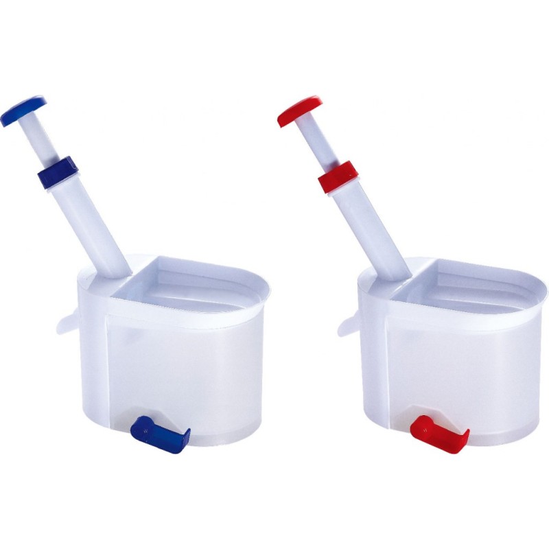 Поставяте плодовете в горния съд, при което те сами попадат един по един под буталото. Натискате буталото, костилката се избутва и попада в долния съд / контейнер /, а плодът излиза през задния отвор. Повтаряте движението с буталото, докато обезкостите плодовете. След употреба съдовете и механизма на буталцето се измиват с течаща вода.