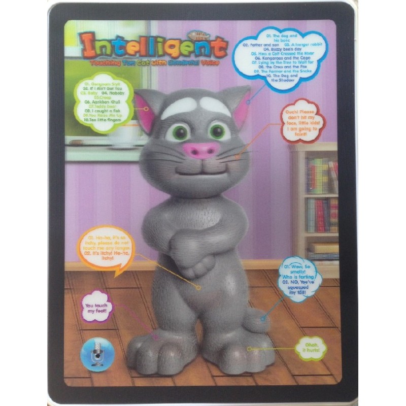Представлява холограмно изображение на известния по цял свят котарак Том, който при докосване издава звуци, смее се, ще ви разкаже история или изпее песен. Разполага с 10 популярни песнички и 10 истории на английски език. Очите премигват в синя светлина, докато говори.