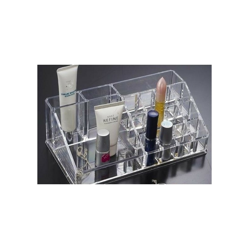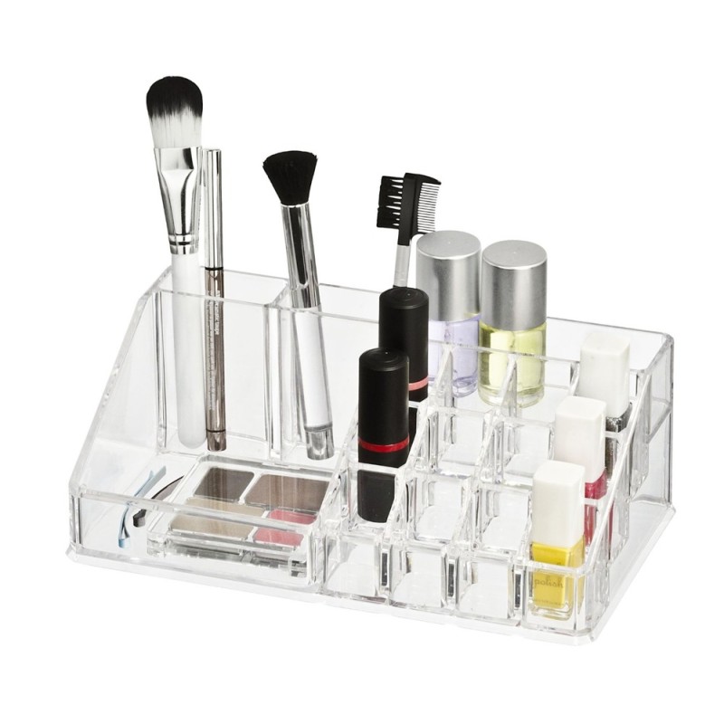 Органайзерът е произведен от устойчив прозрачен материал, който дава пълен визуален достъп до козметиката стилно и красиво. Пространството е разпределено така, че да можете да съхранявате флаконите с фон дьо тен, пудра, червила, моливи за устни и очи, четки за грим и други. Подредете своята тоалетка и не позволявайте някой от продуктите да бъде забравен, избутан в ъгъла на шкафа.