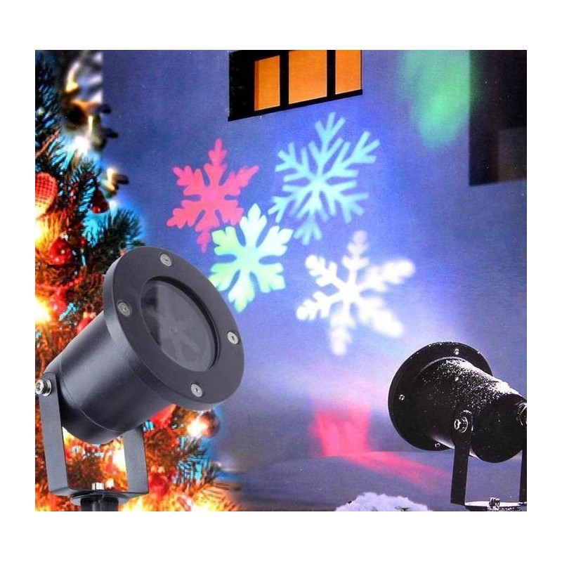 Коледен водоустойчив LED прожектор - въртящи се цветни снежинки.