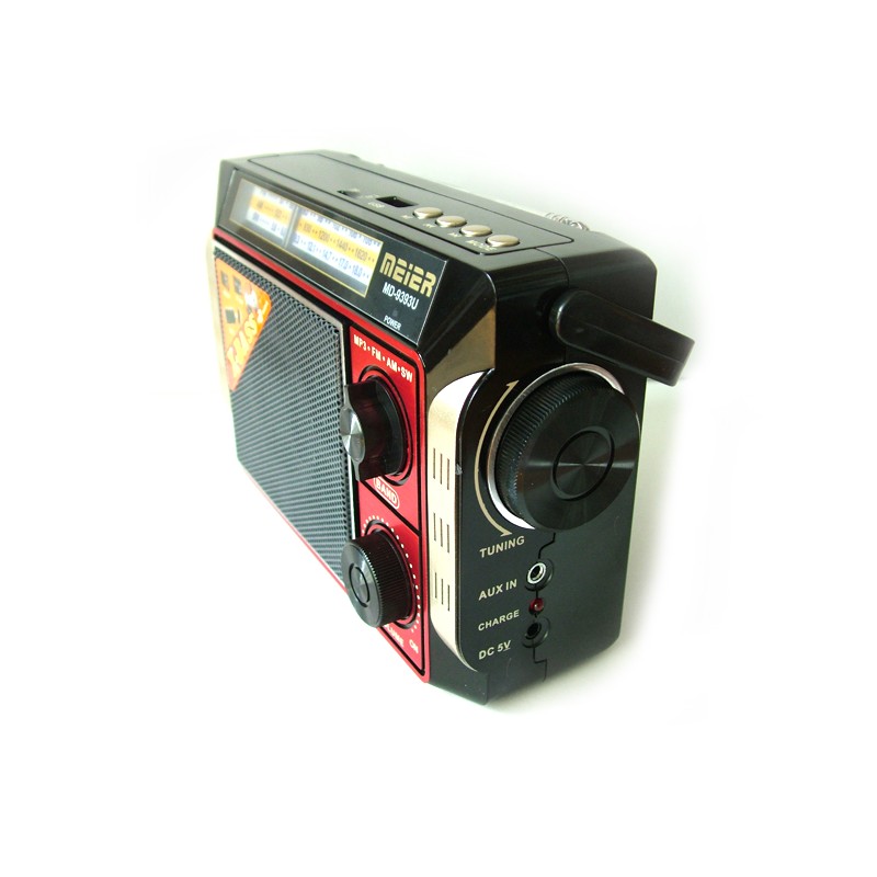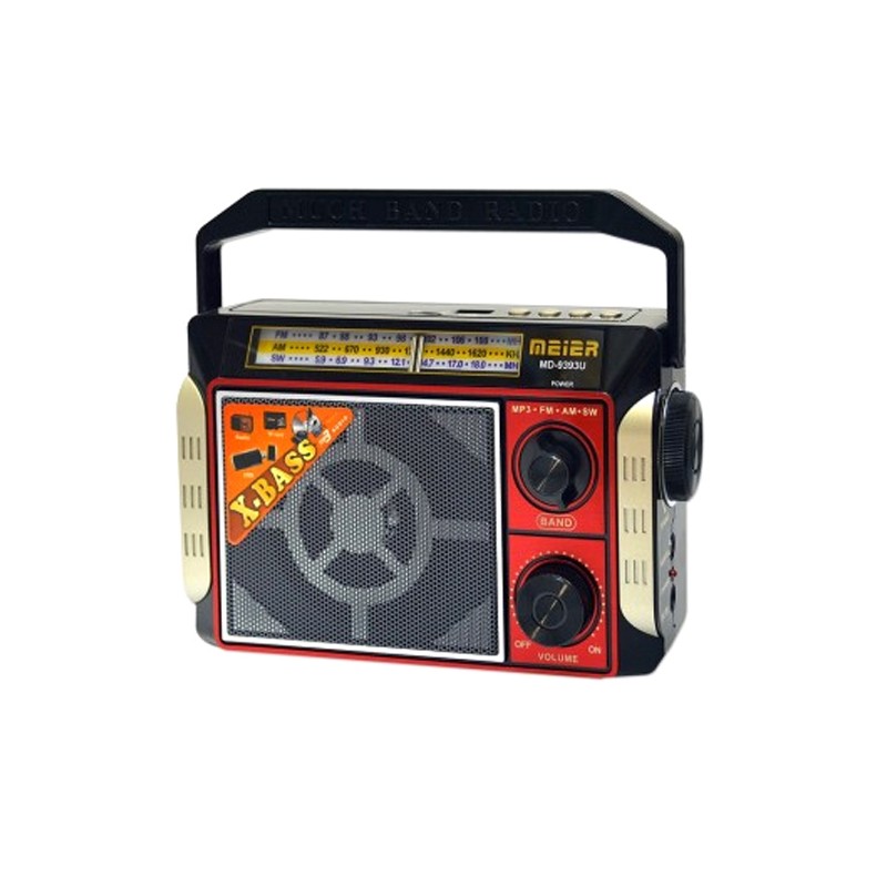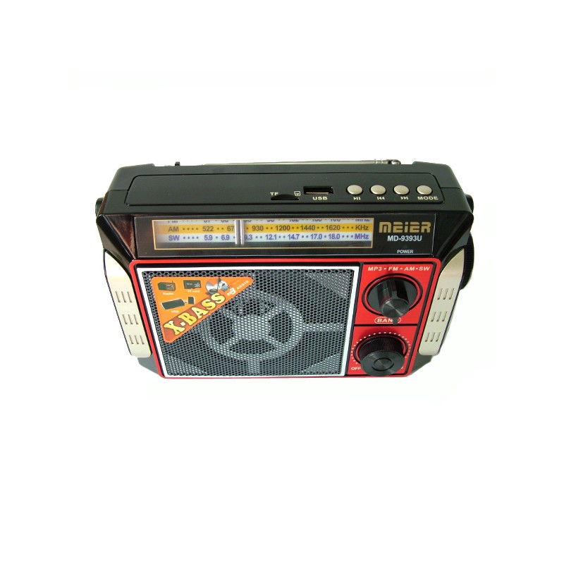 Компактен и стилен преносим радиоприемник, мощен FM радио AM и SW3, Mp3 с USB порт, AUX вход, MP3 Player, акумулаторна батерия, microSD card карта памет за телефон, таблет, лаптоп, смартфон MEIER MD-9393U
