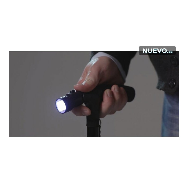 Дължината му се регулира, а меката му ергономична дръжка е снабдена с вградена LED светлина, която да осветява пътя Ви в тъмното. Най-накрая ще имате възможността да се движите безопасно и с увереност!