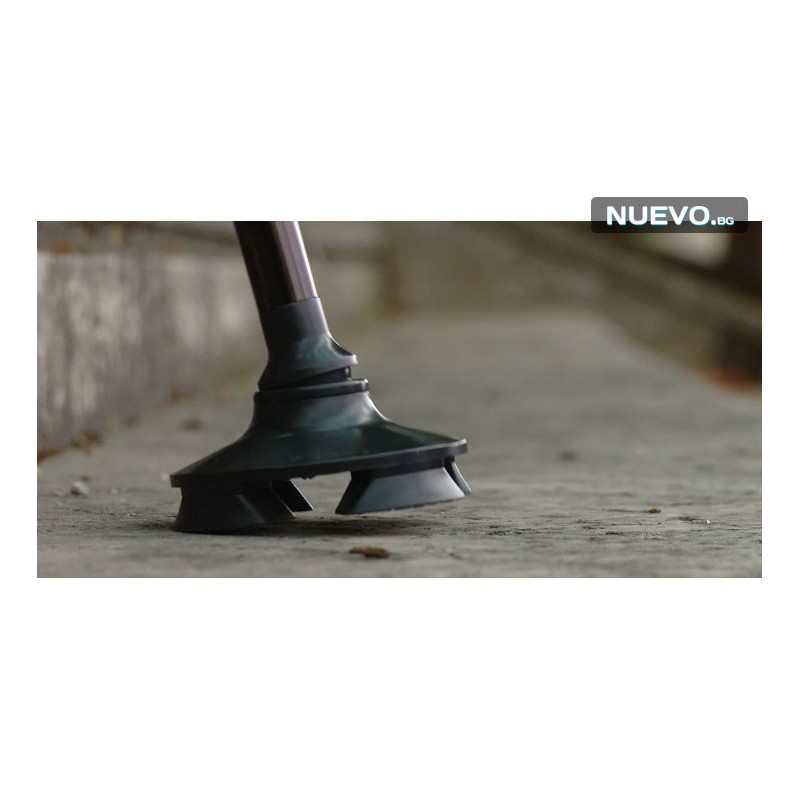 Ексклузивната точка на огъване, която съответства точно на Вашите естествени движения, осигурява сцепление против хлъзгане върху всякакъв вид повърхности. Всичко това е комбинирано с четирите стъпала в долната част и диаметър, четири пъти по-голям от този на обикновен бастун.