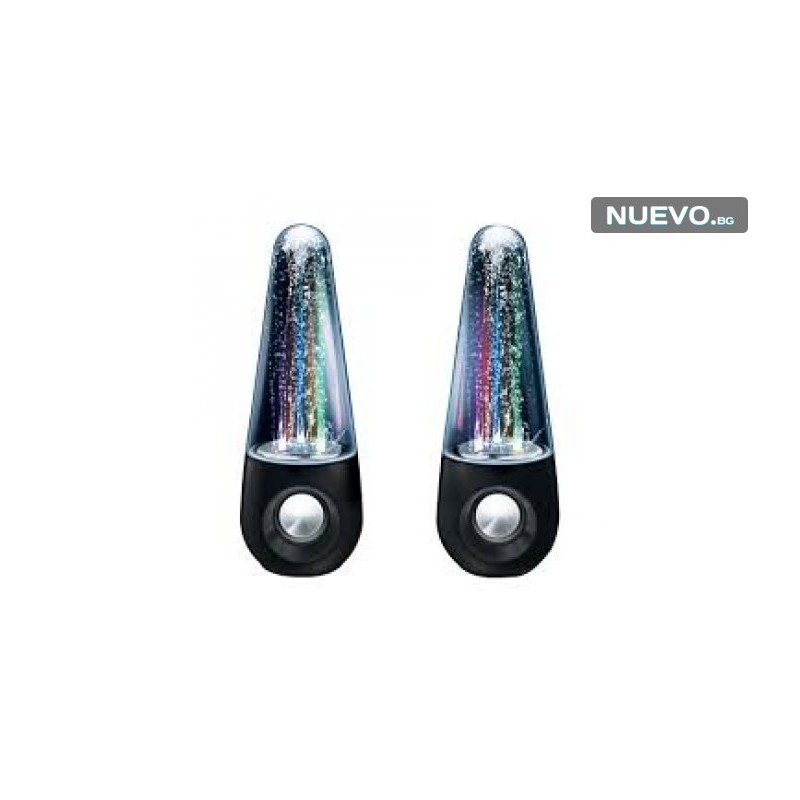 Уникални водно светещи тонколони, произвеждащи много приятно светлинно шоу! Идеално решение за почивка след напрегнатият ден, пуснете любимата си музика и се наслаждавайте на красивите цветни фонтани. Колоните са оборудвани с по четири вградени дюзи LED светлини, които изстрелват фонтанчета цветове в такт с баса на музиката.