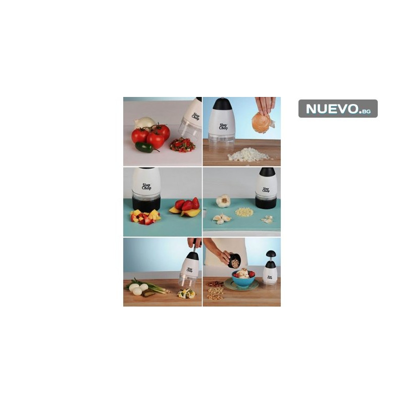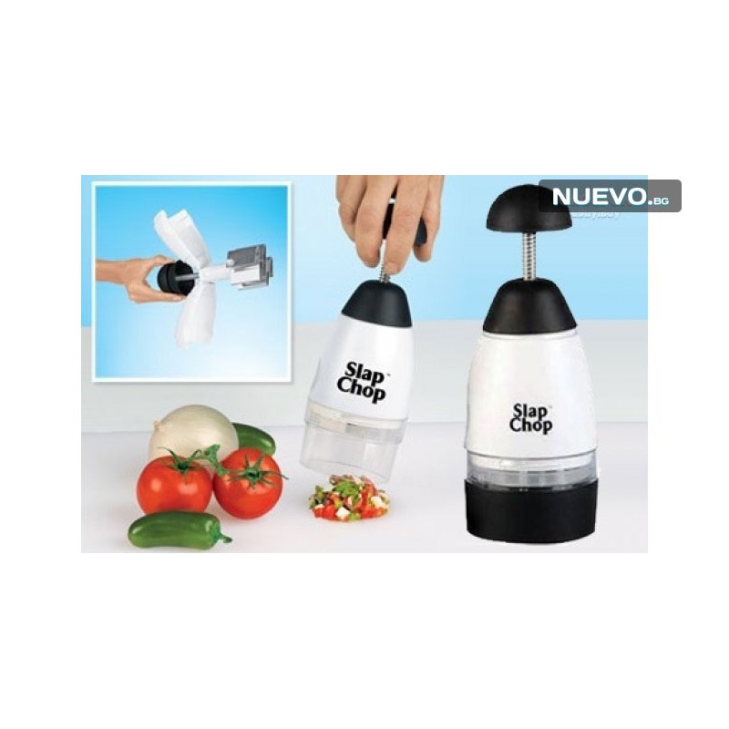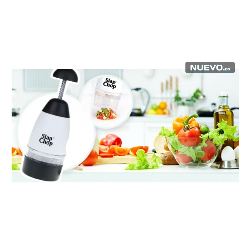 За да си добра домакиня, която приготвя вкусни неща вече не е необходимо да пилееш много време и нерви! Подари си уникалния чопър за кълцане и пасиране - Slap Chop! Само с няколко прости движения този уред ще накълца и пасира желаните продукти, а ти ще спестиш много усилия и време!