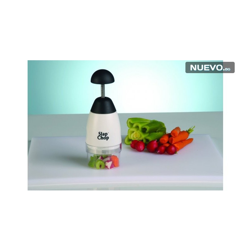 Slap Chop ти дава възможността да накълцаш перфектно зеленчуци, ядки или плодове! Всичко става изключително бързо и лесно! С чопъра можеш и да натрошаваш всякакви продукти, дори и лед за броени секунди!