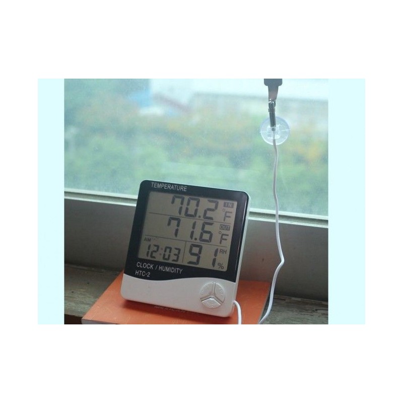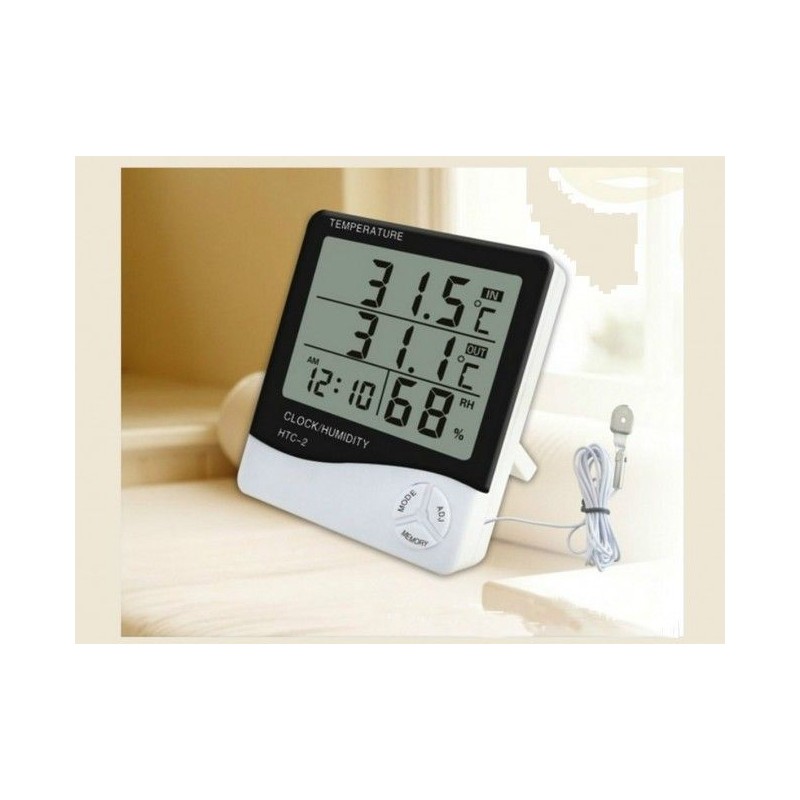 Термометър, хидрометър, часовник с LCD дисплей HTC-2 с външен датчик!