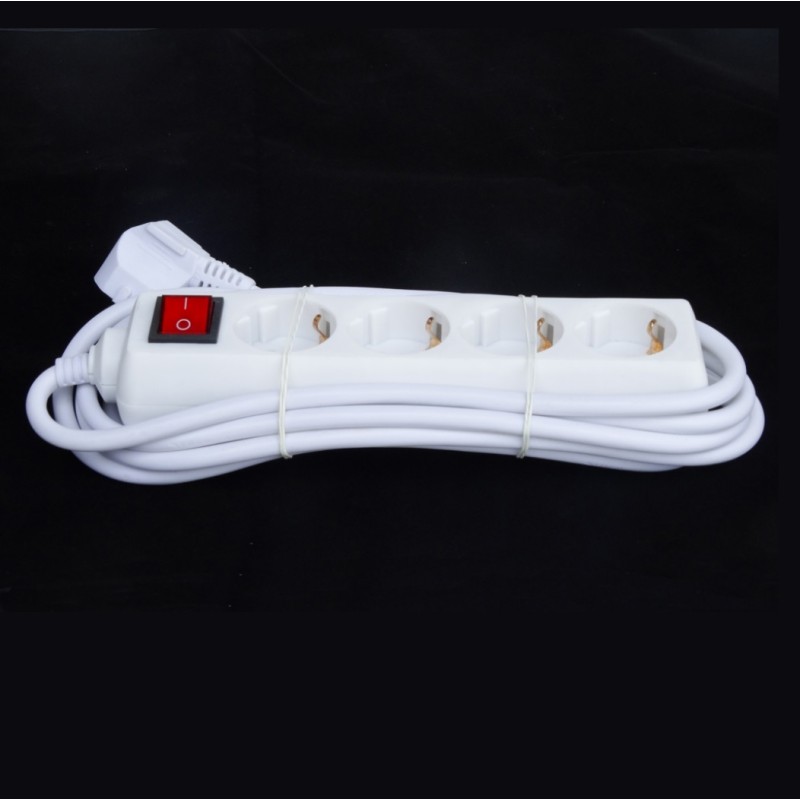 Дълъг захранващ кабел разклонител -четворен, 4 х SCHUKO, 5 м, бял