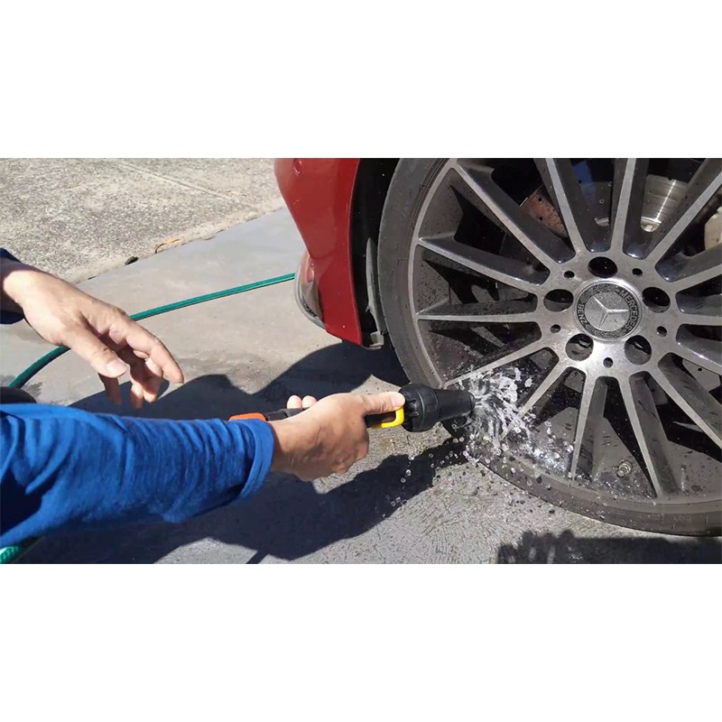 Въртящата се четка на накрайника се задвижва от налягането на водата и е подходяща за почистване на джанти, велосипеди, автомобили и почистване на почти всичко във дома и градината.