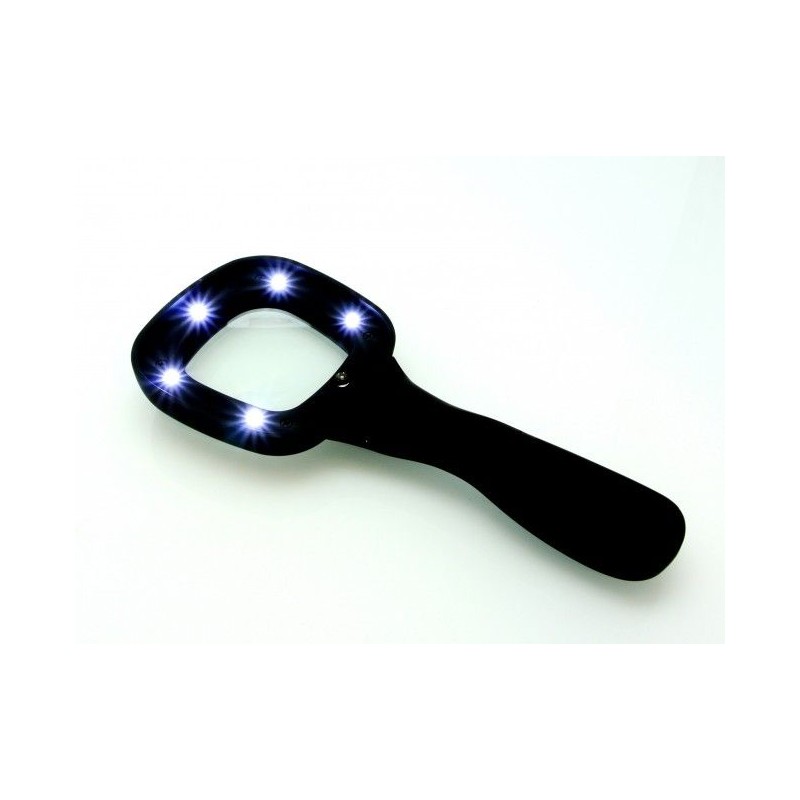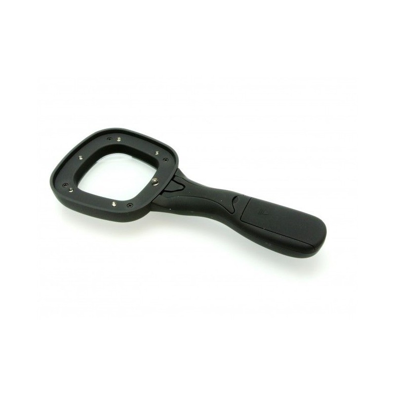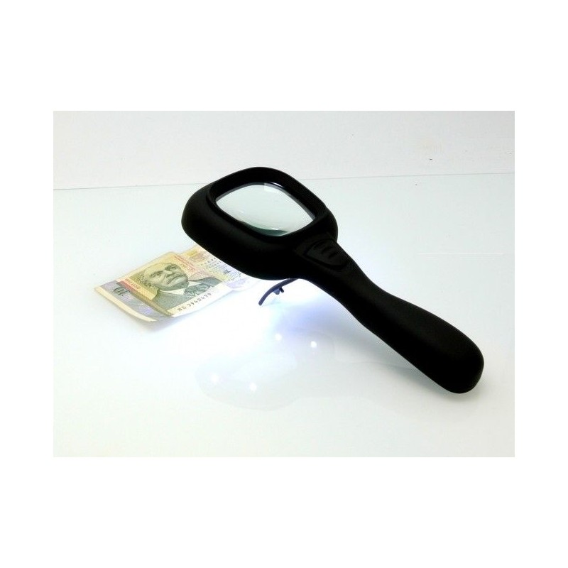 Хай-тек лупа, изработена от висококачествени материали и с кадифена повърхност, със 6 броя осветяващи LED диоди и UV детектор за фалшиви банкноти.