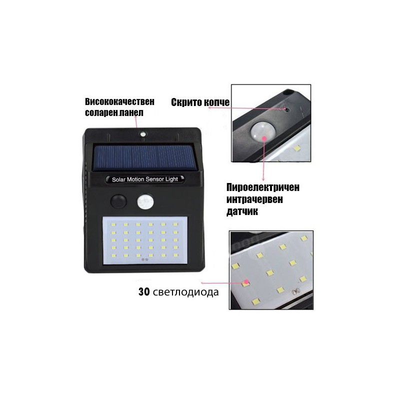 Работно време: До 6 часа в режим на постоянно включване, до 8 часа в режим на слаба светлина, движението задейства до 200 пъти