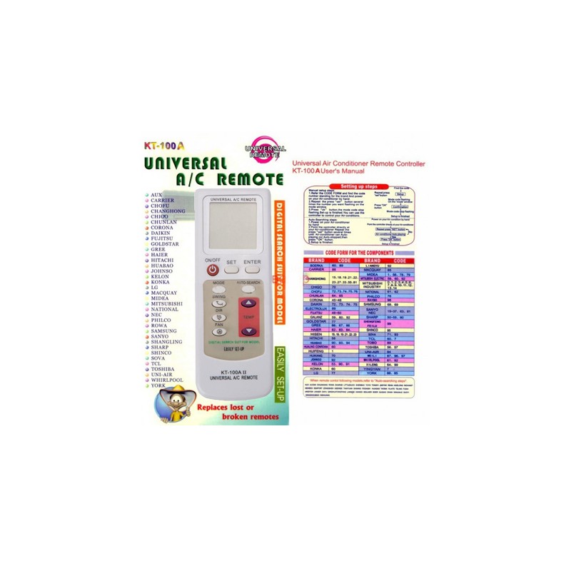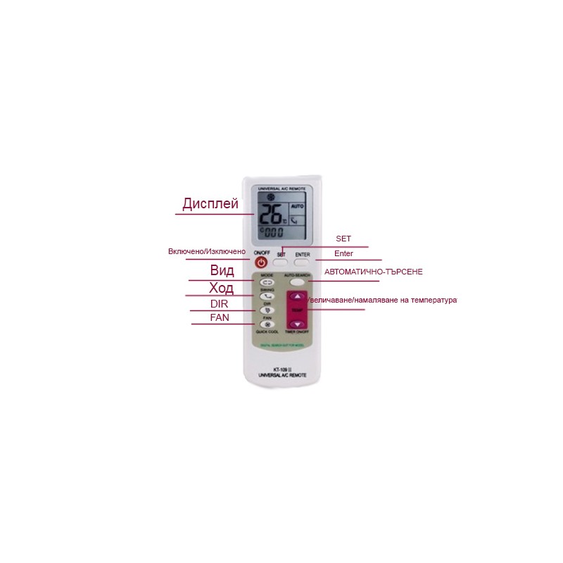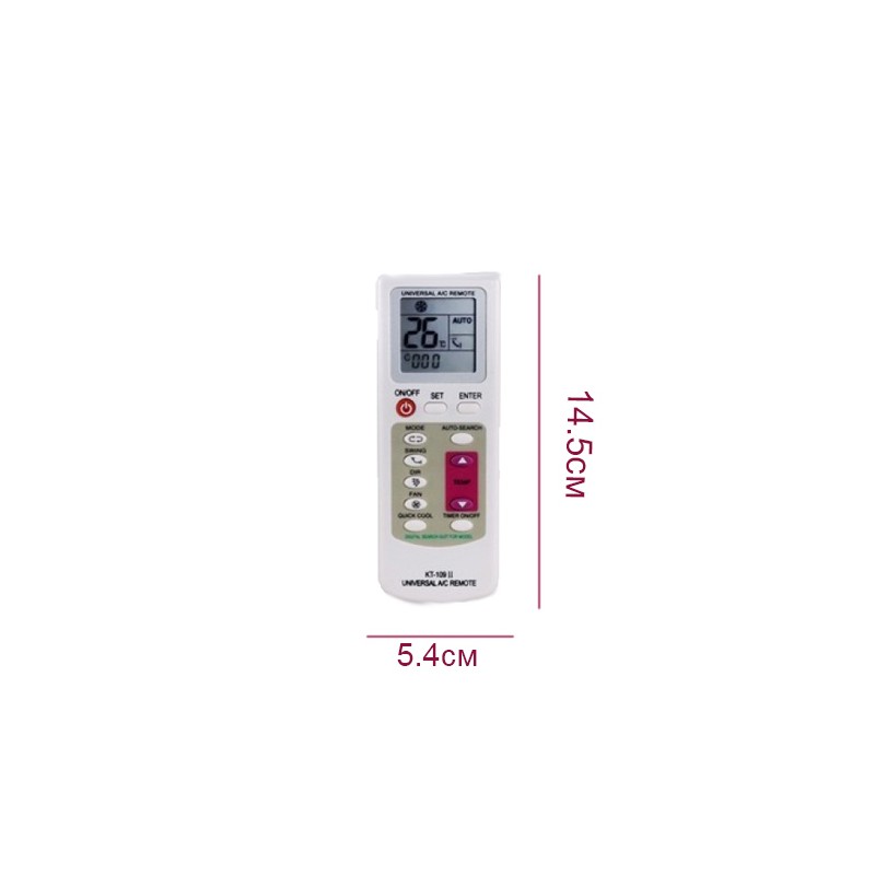 KT-109II e на принципа на цифрови кодове и дава възможност за работа със 109 модела климатици на различни марки.