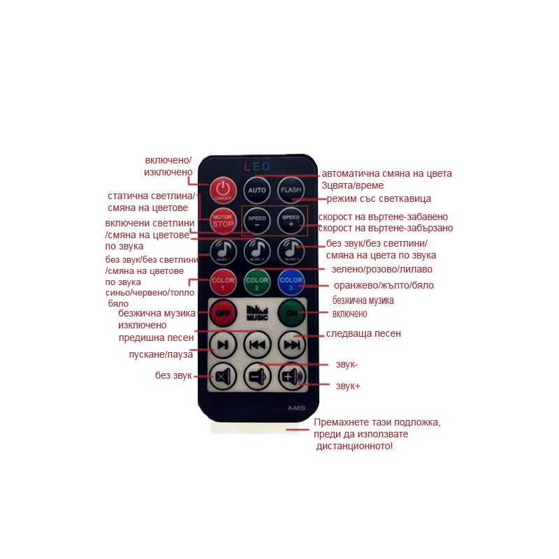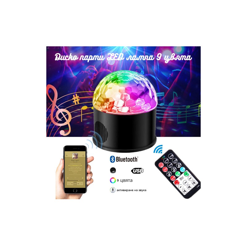 Светлината за управление на звука зависи от ритъма или вида музика, звукът се променя и мига към музиката.