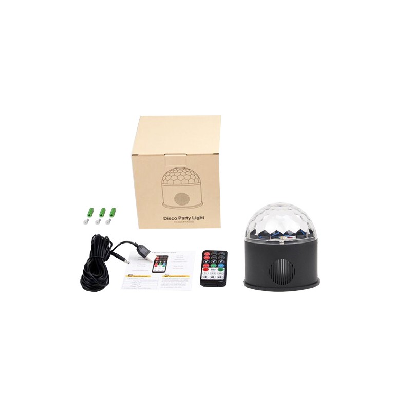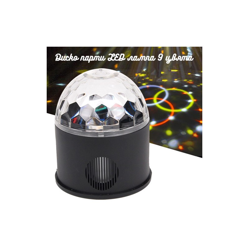 Лампата с дискови топчета се върти 360 градуса на всяка повърхност с цветове от червено, синьо и зелено.