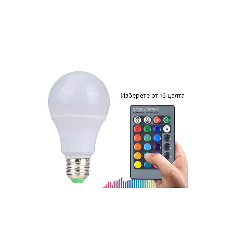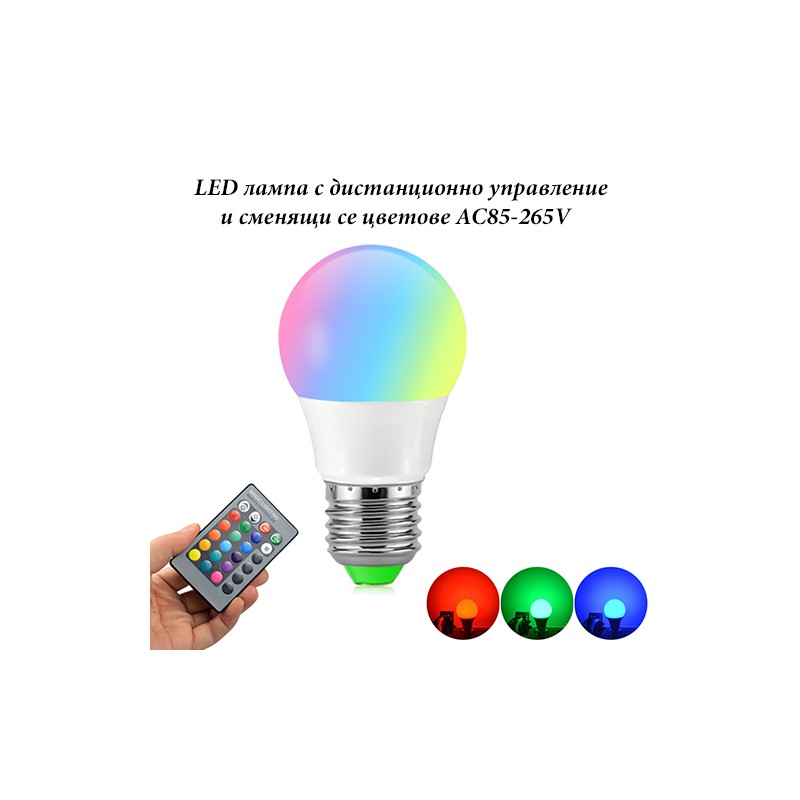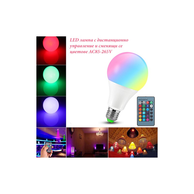 LED лампа с дистанционно управление и сменящи се цветове AC85-265V